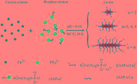 | Scheme 1.Synthesis of hydroxyapatite nanoparticles functionalized by aminoalkyl phosphates (AAP-n), which serve as both surface modifiers and colloidal stabilizers. Preferential crystal growth along c-axis is observed in C2-HA to C6-HA samples. | |