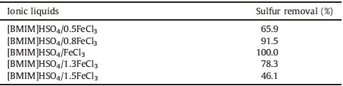 Table 5 The extractive desulfurization of different sulfur compounds by [BMIM]HSO4/FeCl3. |