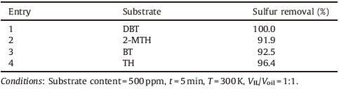 Table 1 Effect of anions in ILs on the extractive desulfurization of model oil. |