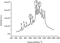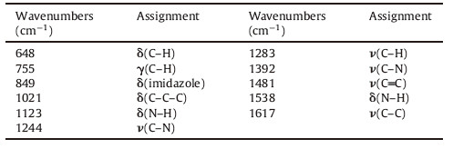 | Table 1 Wavenumbers and assignments of Raman bands of carbendazim. |