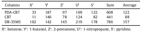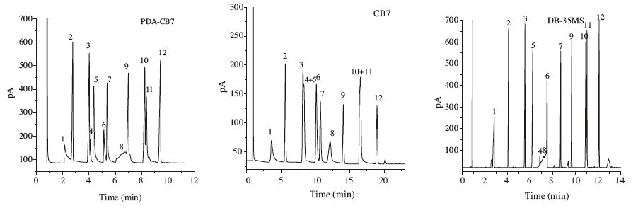 Table 1 McReynolds constants of PDA-CB7,CB7 and DB-35MS capillary columns. |