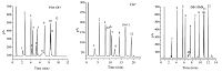 | Fig. 2.Separations of the Grob mixture on PDA-CB7,CB7 and DB-35MS capillary columns. Peaks: (1) 2,3-butanediol,(2) n-decane,(3) n-undecane,(4) nonanal,(5) 1-octano | |