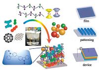| Fig. 1.Schematic layer-by-layer assembly of small molecule, complex, polymer, carbon material and inorganic nanoparticle materials triggered by electrochemical coupling reactions of N-alkylcarbazoles for optical films and devices. | |