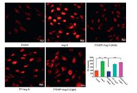 We further observed the light operation of the anti-oxidative effect of PTDHP based on the fact that the dihydropyridine structure can be oxidized to pyridine ring by ROS. Rat aortic endothelial cells were incubated with PTDHP followed by exposure to white light to destroy the structure of DHP, and the fluorescence intensity of DHE was counted. As shown in Fig. 2, the fluorescence intensity ofDHE in cells incubated with PTDHP upon exposing to light was much stronger than that of cells incubated with PTDHP under dark, which indicated that the anti-oxidative effect of PTDHP was disrupted by the ROSproduced by polymer sensitization. Besides, our experiment has verified that exposure to light could not lead to the enhancement of fluorescence intensity of DHE.