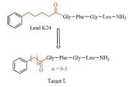 In our previous studies [11, 12, 13, 14, 15], four series of the pentapeptide analogs were designed and synthesized employing the peptidomimetic approach to probe the SAR of the core pentapeptide region of AST. The bioassay and hologram quantitative structure-activity relationships (HQSAR) calculation results suggested that the potent AST analogs should contain an aromatic group, an appropriate length of linker, and an FGLa moiety. Subsequently, a potent AST mimic H17 was found to have a significant inhibitory effect on JH biosynthesis by cockroach CA both in vitro and in vivo [11]. Additionally, owing to its high activity in vitro and its molecular flexibility, K24 was considered as another good lead. In the present work, a series of AST analogs (Fig. 1) were synthesized by modifying the linker of K24 and their bioactivities were evaluated for the purpose of discovering new potential mimics and exploring the effect of linker length on inhibition of JH biosynthesis.