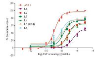 | Fig. 2.Dose-response curves for ASTs in CHO-WTA11 cells expressing Dippu-AstR. Data points represent the average ± SEM of three independent measurements performed in duplicate and are expressed as percentage of the maximal response. The zero response level corresponds to treatment with BSA buffer only. | |