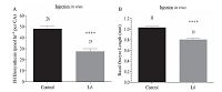 | Fig. 3.Effect of L6 on JH biosynthesis by CA (A) and oocyte growth (B) from day 3 mated female D. punctata in vivo following injection. Five microliter of L6 (final concentration was 10 μmol/L) was injected into cockroaches on day 1 and assayed on day 3. Animals injected with 5 μL of H2O were used as control group. Each bar represents the mean ± SEM for the number of individual measurements indicated at the top of error bars. Asterisks indicate significant differences between peptide- and water-injected groups of animals as determined by t-test: **** P < 0.0001. | |