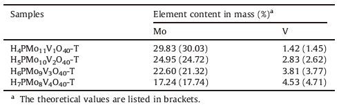 Table 1 The element analysis of H3 + xPMo12 - xVxO40-T, x=1, 2, 3, 4. |