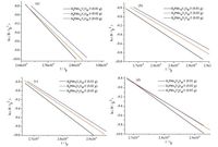 | Fig. 4.The ln(B=Tp2 ) as a function of 1/Tp based on H3 + xPMo12 - xVxO40-T. (a) H4PMo11V1O40-T, (b) H5PMo10V2O40-T, (c) H6PMo9V3O40-T, (d) H7PMo8V4O40-T. | |