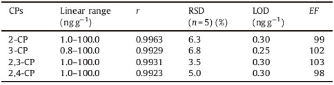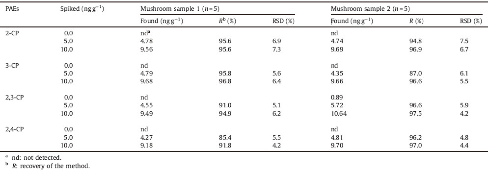Table 2 Analytical results for the determination of CPs in mushroom samples. |