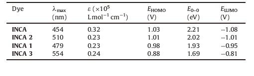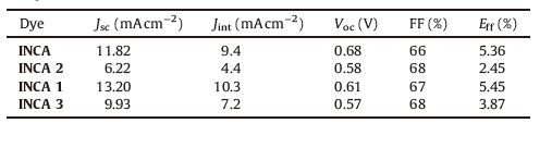 Table 4 The performance of DSSCs based on INCA[3TD$DIF] series. |