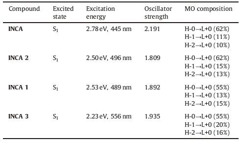 Table 3 Computed excitation energy, oscillator strength and molecular orbital compositions for the lowest excited states of the sensitizer dyes. |