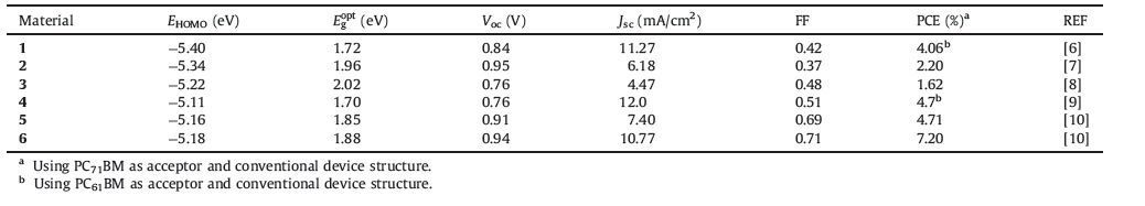 Table 1 The electrochemical, optical properties and photovoltaic performances of materials 1-6. |