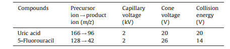 Table 1 Product ion pairs and parameters for MRM of compounds used in this study. |