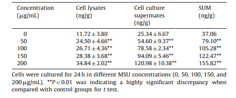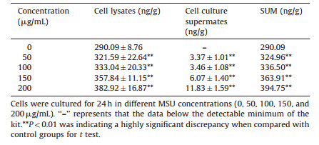 Table 2 The expression of ICAM-1 in cell lysates and cell culture supermates by MSUstimulated (mean±SD, n=3). |