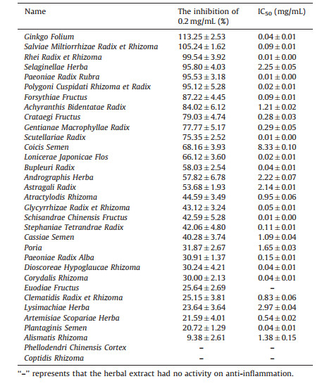 Table 4 Anti-inflammatory activity of herbal extracts (mean±SD, n=6). |