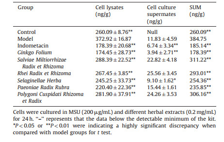 Table 6 Effect of herbal extracts on ICAM-1 level (mean±SD, n=6). |