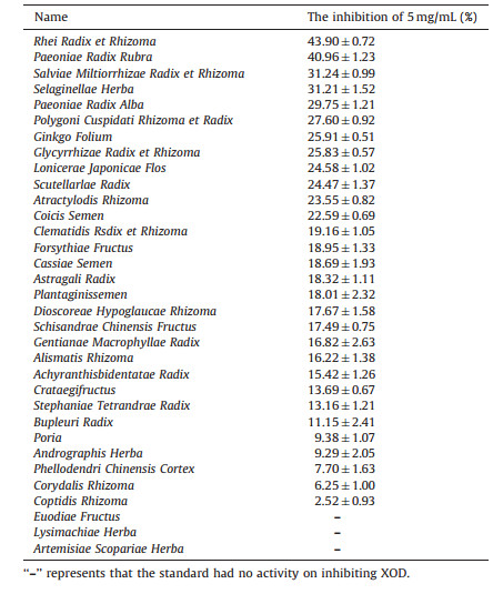 Table 8 The herbal extracts for inhibition of XOD (mean±SD, n=3). |