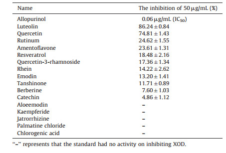 Table 9 The standards for inhibition of XOD (mean±SD, n=3). |