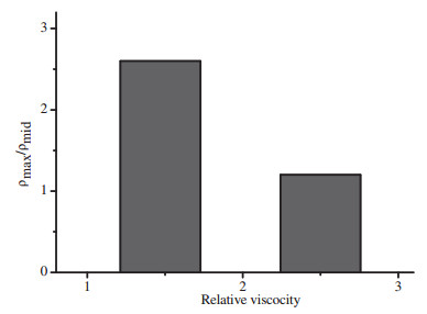 | Figure 2. The maximum local density, ρmax, normalized by the density in the droplet centre, ρmid, plotted for different relative viscosity. | |