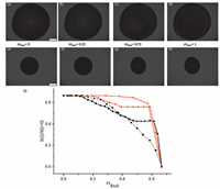 | Figure 1. (a, b) Images of the final distribution of SiO2microspheres with PEO (1.5 g/L) additives on PS film with (a) and without (b) O2 plasma. The scale bar is 1 mmin (a) and (b). (c, d) Photographs of a flat emulsion droplet with a CA of 10° (c) and a spherical emulsion droplet with a CA of 70° (d) with PEO additives after and before the PS films were exposed to O2 plasma. (e) The maximum local density, ρmax, normalized by the density in the droplet centre, ρmid, on PS film with and without O2 plasma. | |
