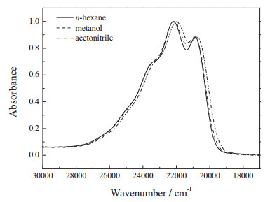 2. Experimental 2.1. Sample preparationAll trans-β-carotene (hereafter, β-Car) was purchased from Sigma (Steinheim, Germany) and twice recrystallized in n-hexane/ acetone mixture. The purity was checked by HPLC up to 95%. The pigments were kept refrigerated at -20 ℃ before use. All solvents (HPLC or spectroscopic grade) for spectroscopic measurements are from Meridian Medical Technologies, Inc. (Columbia, MD) and used directly after purchasing without further purification. Purified carotenoid was dissolved in n-hexane, in methanol, or in acetonitrile at a concentration of 1.5 × 10-5 mol/L together with anthracene (1.5 × 10-4 mol/L), and the solution circulated from, and to a reservoir (90 mL) through a quartz flow cell with an optical path-length of 5 mm for ns time-resolved absorption measurement.