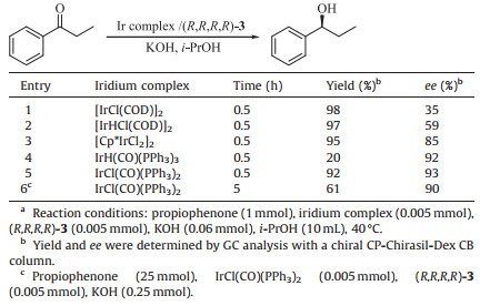 Table 2 ATH of a broad scope of ketones catalyzed by IrCl (CO)(PPh3)2/(R, R, R, R)-3.a |