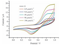 | Figure 6. CVs of GO/MnO2/GCE in 0.1 mol L-1 PBS (pH 7.0) with different concentrations of H2O2. | |