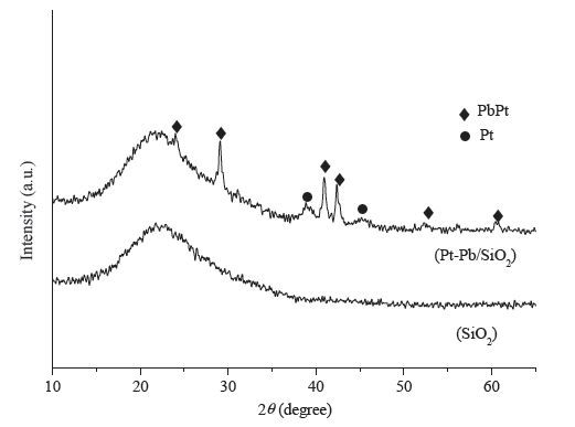 | Figure 1. XRD patterns of SiO2 and Pt-Pb/SiO2. | |