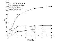 | Figure 6. The hydrogenation of NB under different H2 pressures. Conditions: NB=20 mmol, Pt-Pb/SiO2 (Pt: 2 wt%, 1 μmol Pt), H2O=60 mL, PCO2=7 MPa (at reaction temperature, 5 MPa initially at room temperature), T=110 ℃, stir rate=1250 r/min, t=3 h. | |