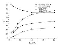 Fig. 4 showed that there was hardly any PAP produced with no CO2 in the system, but the selectivity of PAP increased dramatically from 0 to 70% when the initial CO2 pressure increased from 0 to 5 MPa. Apparently, the increase of CO2 pressure increased the acidity of the system and favored the formation of PAP, the result was in agreement with that reported in our previous work [7].