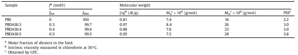 Table 3 Composition and molecular weight data of PBDASx copolyesters. |