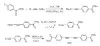 4. Experimental 4.1. Materials1, 4-Butanediol (BDO, AR grade), and zinc acetate (Zn (OAc)2, AR grade) were purchased from Kelong Chemical Corporation (Chengdu, China). Dimethyl succinate (DSA, AR grade) was purchased from Alfa Aesar Chemical Corporation (Tianjin, China). Tetrabutyl titanate (TBT), used as a catalyst, was also provided by Kelong Chemical Corporation, and dissolved in anhydrous toluene to prepare 0.2 g/mL solution. Methyl 4-iodobenzoate (AR grade), ethynyltrimethylsilane (AR grade), copper (I) iodide (CuI, AR grade) and bis (triphenylphosphine) palladium (II) chloride (Pd (PPh3)2Cl2, AR grade) were purchased from Yinuokai Chemical Corporation (Beijing, China). Copper (I) chloride (CuCl, AR grade), dimethyl sulfoxide (DMSO, AR grade), potassium carbonate (K2CO3, AR grade), triethylamine (Et3N), tetrahydrofuran (THF), hydrochloric acid (HCl), methanol and ethanol were purchased from Kelong Chemical Corporation. DA monomer (described in Supporting information) is synthesized according to the following synthetic procedures (Scheme 1).