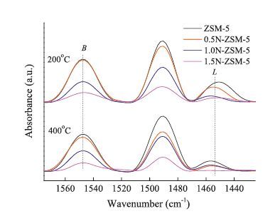 | Figure 7. FT-IR spectra of pyridine adsorption on nitrided hierarchical porous ZSM-5 | |