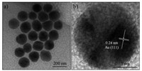 | Figure 1. (a) TEM and (b) HRTEM images of as-synthesized Au nanoparticles. | |