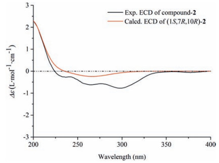 | Figure 5. Experimental and calculated ECD spectra of compound 2 | |