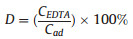 where CEDTA was the metal ion desorbed to the EDTA solution (mg/ L) and Cad was the metal ion adsorbed onto the CMCH (mg/L).