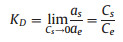 where αs is the activity of metal ions adsorbed onto CMCH, αe is the activity of metal ions in solution at equilibrium, υs is the activity coefficient of the adsorbed metal ions and ne is the activity coefficient of metal ions in solution at equilibrium, Cs is the concentration of metal ions adsorbed on CMCH (mg/g); Ce is the equilibrium concentration of metal ions in the solution (mg/L). KD can be obtained by plotting a straight line of ln (Cs/Ce) versus Cs and extrapolating Cs to zero. The intercept gives the values of KD.