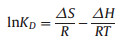 Thermodynamic parameters including Gibbs free energy changes (ΔG), enthalpy change (ΔH), and entropy change (ΔS) are calculated using the following equations [22, 23]: