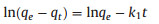 where qe and qt (mg/g) were the amounts of metal ions adsorbed on CMCH at equilibrium and at any time t (h), respectively, and k1 was the pseudo-first-order rate constant (1/h). The value of k1 can be calculated from the slopes of the linear plot of ln (qe -qt) vs t. k2 was the pseudo-second-order rate constant (g/(mgh)). The value of k2 and qe, cal value can be calculated fromthe intercept and slopes of the linear plots of t/qt vs t.