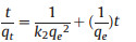 The pseudo-second-order kinetic rate equation can be expressed as follows [25]: