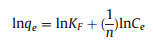 The Freundlich isotherm expresses adsorption at multilayer and on energetically heterogeneous surface which can be expressed as follows [28]: