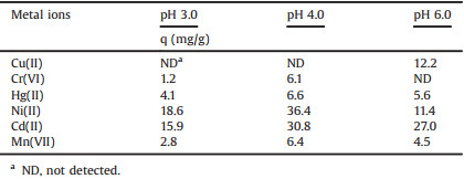 Table 1 Effect of pH on the uptake of metal ions |