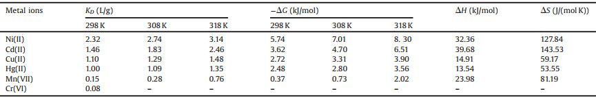 Table 2 Thermodynamic parameters for the adsorption of metal ions onto CMCH. |
