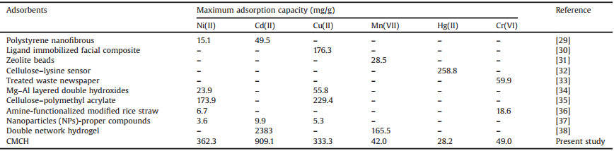 Table 5 Comparison of the maximum adsorption capacities of various metal ions onto different adsorbents reported in the literatures |