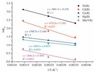 | Figure 5. Plot of the equilibrium constant at different temperature for the metal ions adsorption onto CMCH | |