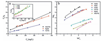 | Figure 7. Langmuir (a) and Freundlich (b) isotherm model fitted for the adsorption of metal ions by CMCH | |