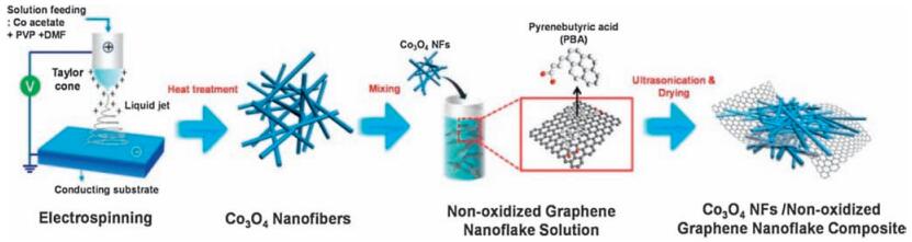 | Scheme 3. Schematic illustration of the synthetic strategy of the Co3O4 NF/GNF composite. Reprinted from Ref. [69]. Copyright 2013 American Chemical Society. | |