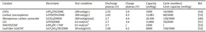 Table 3 Li-O2 battery performance with various nano-structured carbon materials catalysts. |