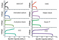3. Cathode electrocatalystsElectrode catalysts are often considered in several aspects: catalytic active sites, the transport channels for oxygen diffusion and electrons transport. Enough space is also required for discharge product storage. Currently, non-aqueous Li-O2 battery of the catalyst can be roughly divided to noble metals, transition metal oxides, nano-carbon materials, nano-carbon hybrid materials and other catalyst materials.
